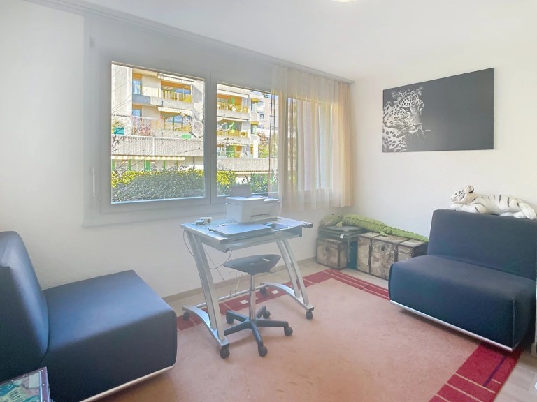 Ce bel appartement rénové de 77 m2 + un balcon de 9 m2 se situe à proximité directe des transports en commun, des commerces et des écoles. En retrait de la route principale et hors nuisance, ce logement profite d’une vue dégagée sur la ville et les Alpes.