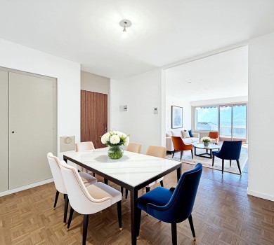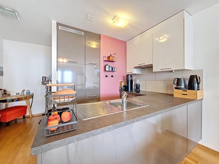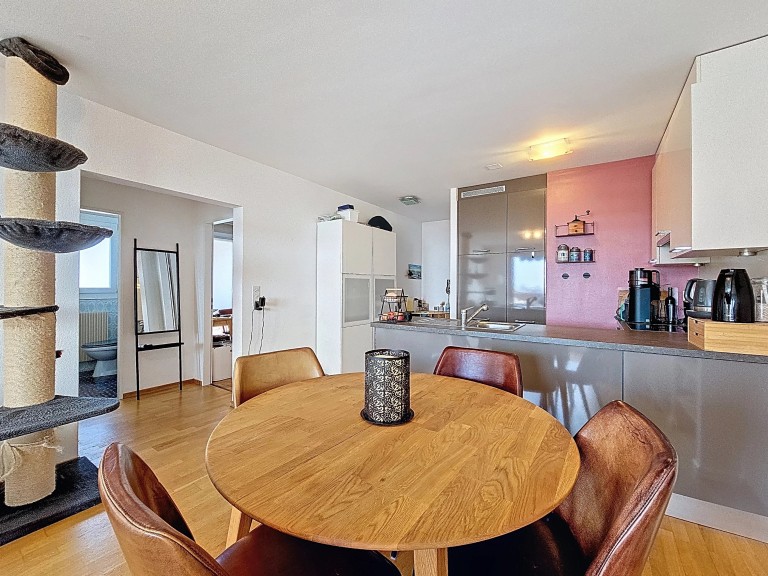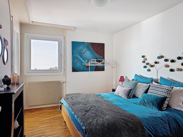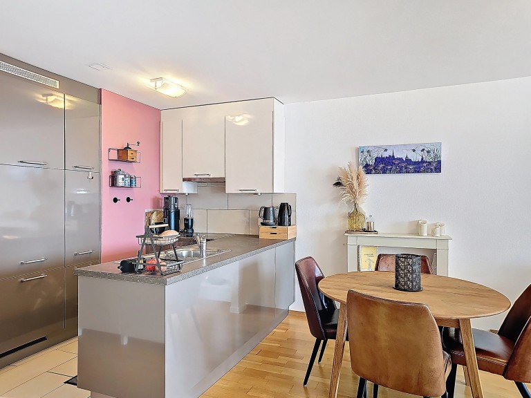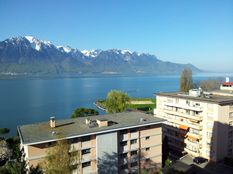 Joli appartement rénové profitant d’une magnifique vue sur le lac, la ville et les montagnes.