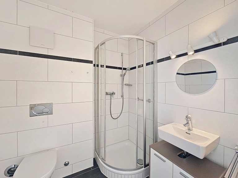 Une cave ainsi que deux places de parc intérieures (incluses) dans un garage double avec porte automatique viennent compléter ce logement.