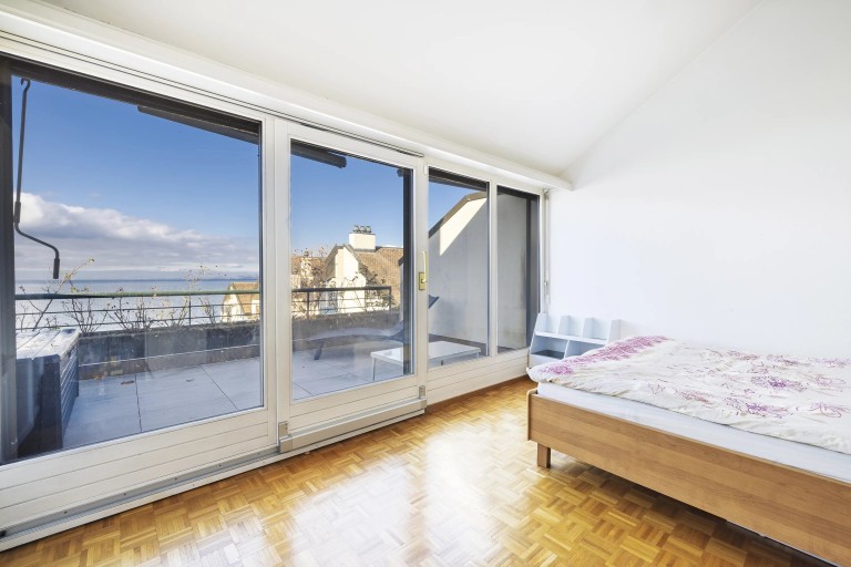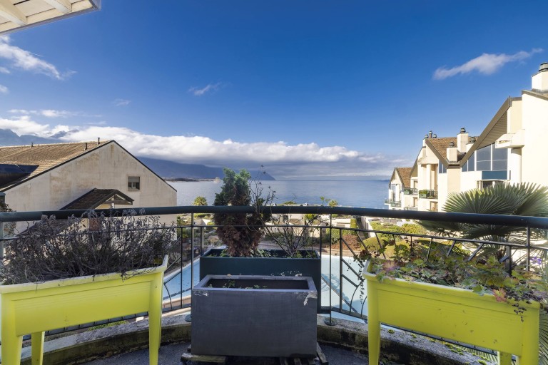 Bel appartement situé au dernier étage, en duplex, au bénéfice d’une superbe vue panoramique sur le Léman et les Alpes.