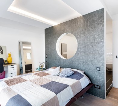 La partie nuit comprend une suite parentale avec sa salle de douche, 2 autres chambres d’environ 19 m² en rez-de-jardin ainsi qu’un bureau et une salle de bains complète.