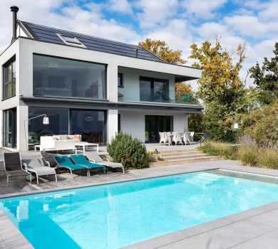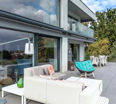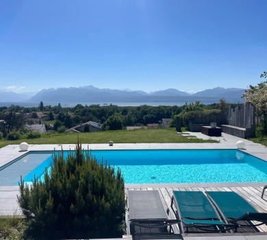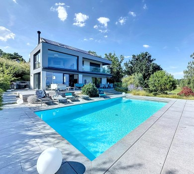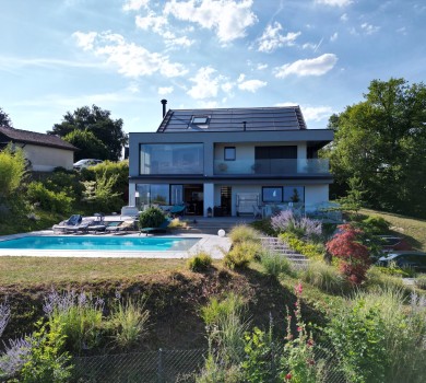 Découvrez cette très belle villa contemporaine et profitez d’un jardin arboré exceptionnel, agrémenté de nombreux arbres fruitiers, sur une parcelle de plus de 1’400 m2.