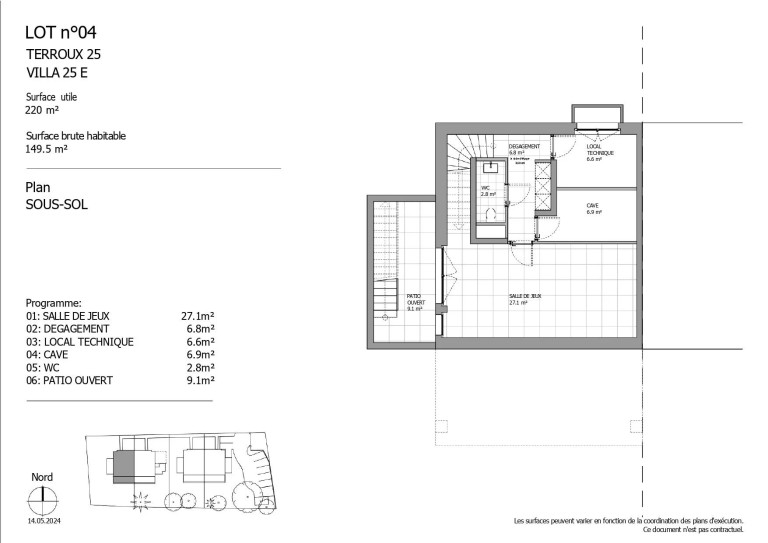 – Sous-sol : 70 m². Hauteur de plafond : 2.50 m.