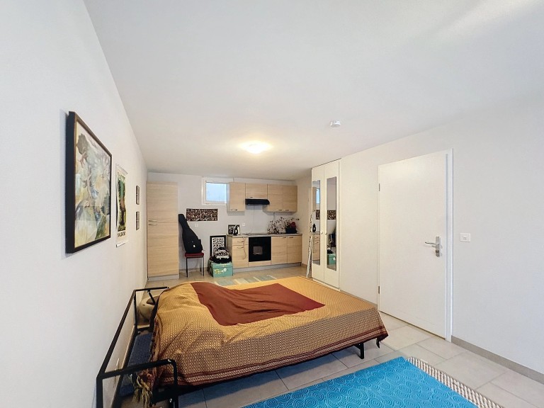 Un studio avec accès extérieur, kitchenette et salle de douche est aménagé au sous-sol. Ce niveau inclut aussi une buanderie et un abri.