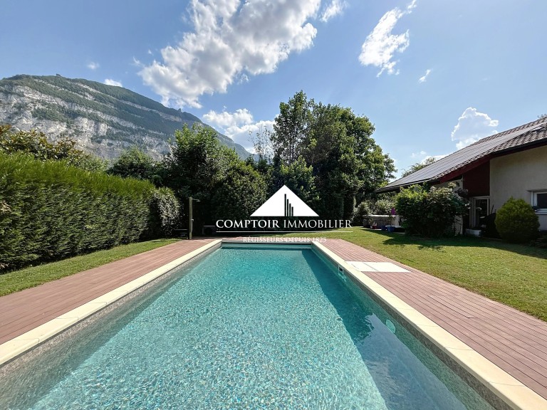 Idéalement implantée sur un vaste terrain plat de plus de 2’000 m², elle bénéficie de jolis extérieurs avec une piscine chauffée (10m*4.5), une terrasse couverte de près de 50 m² avec son jacuzzi et un grand jardin arboré et clôturé.