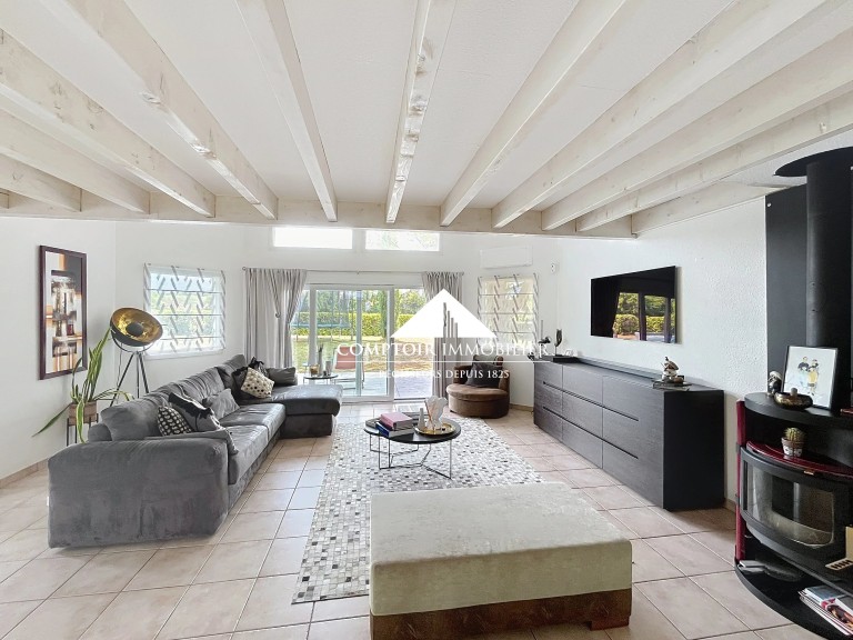 L’accès de la maison est sécurisé par un portail électrique. Un grand garage et un carport complètent avantageusement l’ensemble.