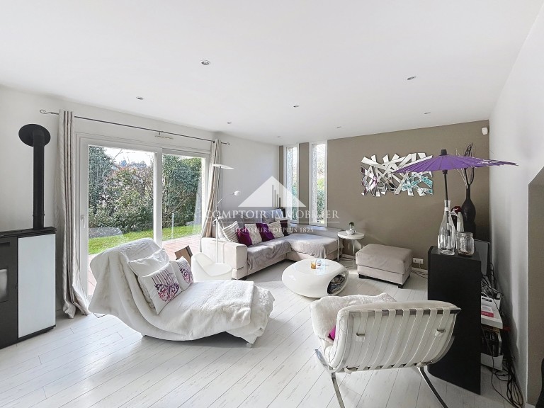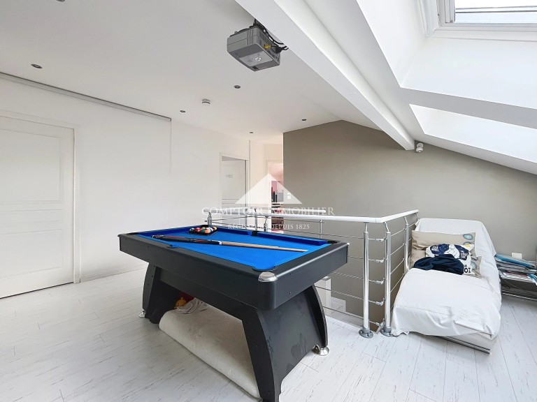 Cette villa d’environ 200 m² située à Etrembières (quartier « Pas de l’Échelle ») offre un cadre de vie exceptionnel sur une parcelle de près de 2’000 m², à l’abri des regards et au calme absolu.