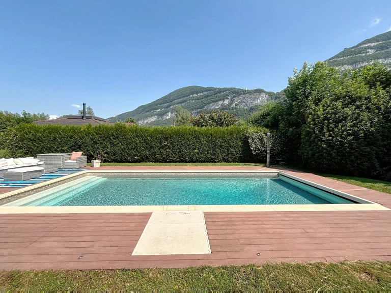 Les extérieurs ont été particulièrement soignés avec une piscine chauffée (10m*4.5), une terrasse couverte de près de 50 m² avec son jacuzzi et un grand jardin arboré et clôturé.