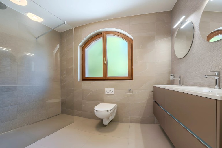Cet étage comprend également un WC visiteur, une salle de bain avec douche, ainsi qu’une suite parentale avec salle de bain privative équipée d’une douche italienne et d’une double vasque. Deux autres chambres complètent cet espace, offrant un confort optimal pour toute la famille.