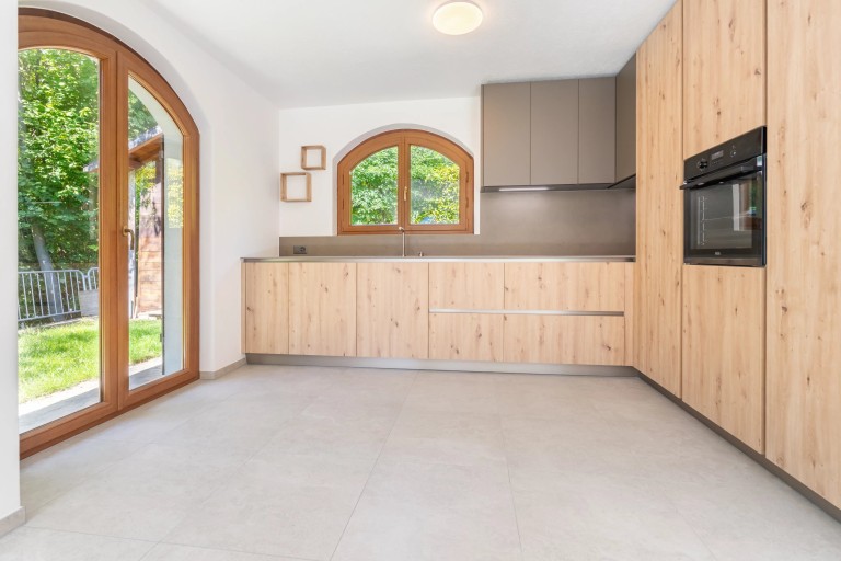 L’étage supérieur accueille un espace de vie lumineux avec séjour et cuisine ouverte, offrant un accès direct à la terrasse et au jardin. Le séjour profite d’une atmosphère chaleureuse et conviviale, parfaite pour recevoir famille et amis.
