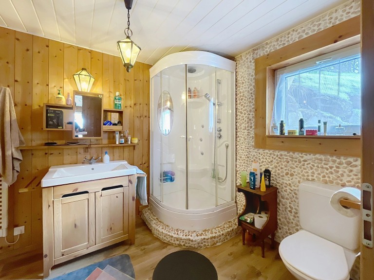 Pour parfaire l’ensemble, le chalet dispose encore d’un second atelier ainsi que d’une buanderie commune, apportant un confort supplémentaire au quotidien.