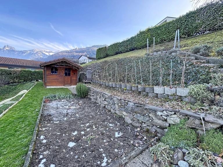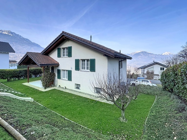 À l’extérieur, la parcelle est soigneusement aménagée et propose trois places de parc extérieures. Une terrasse couverte permet de profiter pleinement des beaux jours, tandis que le jardin situé à l’arrière de la maison garantit intimité et tranquillité.