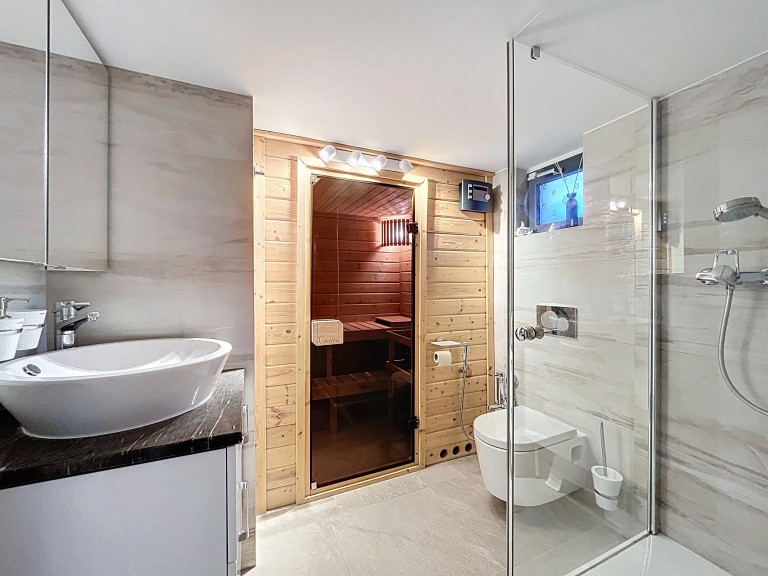 Avec ses 290 m² habitables distribués sur trois niveaux, la maison familiale offre 3 à 4 chambres, tout autant de salle d’eau, un salon ouvert sur la salle à manger et la cuisine, sans oublier le jardin d’hiver, agréable tout l’année. Uns salle de sport, une salle de musique et un sauna se trouve au rez inférieur. Quant à la grande terrasse, elle permet de profiter du soleil tout au long de la journée, au bord du jacuzzi et de la piscine, sans oublier l’espace jeux pour les enfants.