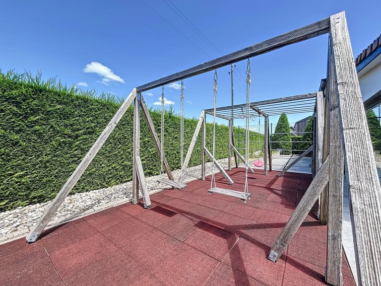Avec ses 225 m² habitables distribués sur trois niveaux, la maison familiale offre 3 à 4 chambres, tout autant de salle d’eau, un salon ouvert sur la salle à manger et la cuisine, sans oublier le jardin d’hiver, agréable tout l’année. Uns salle de sport, une salle de musique et un sauna se trouve au rez inférieur. Quant à la grande terrasse, elle permet de profiter du soleil tout au long de la journée, au bord du jacuzzi et de la piscine, sans oublier l’espace jeux pour les enfants.