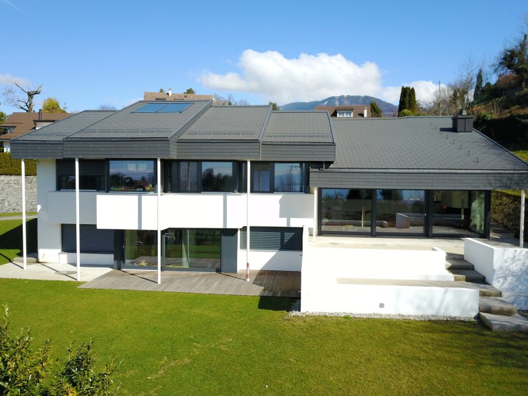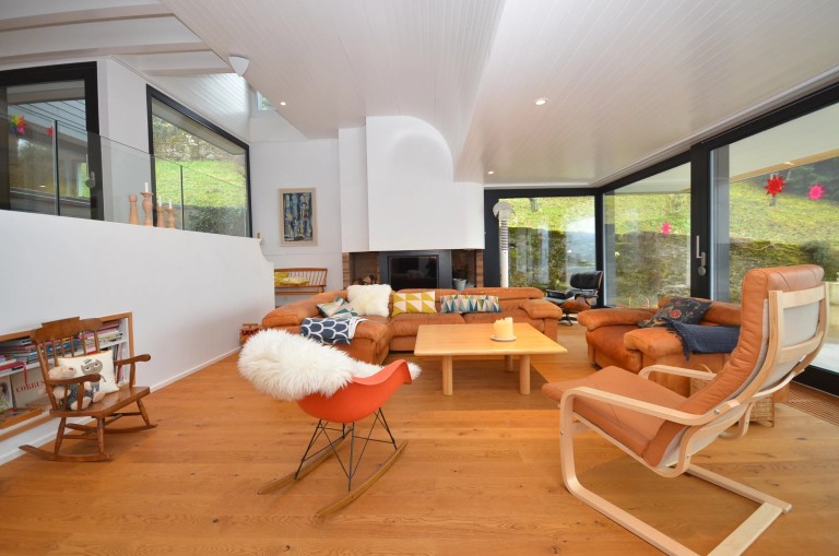 Idéalement située dans un quartier calme et résidentiel, à la fin d’une route sans issue et aux portes de Vevey, cette superbe propriété d’architecte vous séduira par ses finitions soignées de qualité et ses volumes généreux.