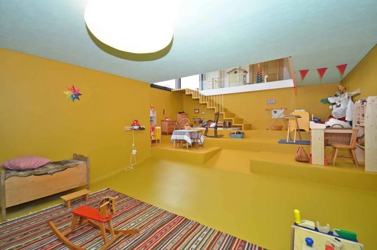 Le rez inférieur est composé de deux chambres, d’un espace de jeux et de deux salles douches. Un espace wellness avec sauna et hammam ainsi que divers locaux complètent ce niveau