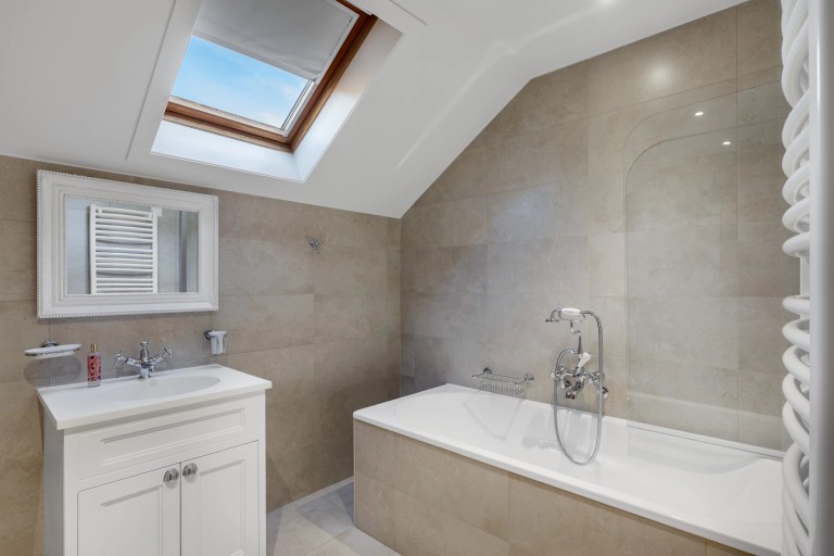 Les étages accueillent 5 chambres (dont une aménagée en dressing) et deux salles-de-bain. Les combles, offrant plus de 40 m² avec une belle hauteur sous plafond, constituent un espace modulable, parfait pour ajouter des chambres et une salle de bain supplémentaire.