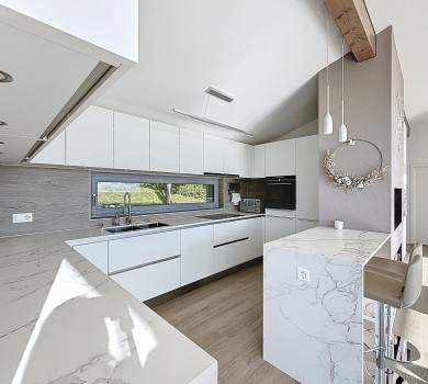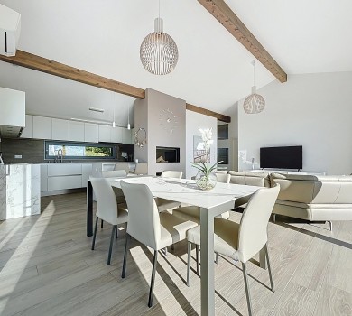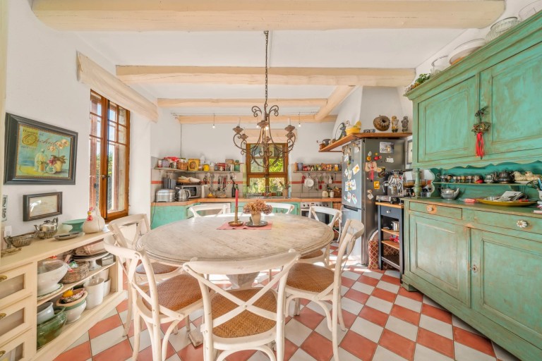 Répartie sur trois niveaux, elle dispose de deux salons lumineux, de quatre chambres dont une suite parentale, et de trois salles d’eau. La pièce de vie principale comprend une cuisine ouverte avec cheminée, une buanderie, un garde-manger, un vestiaire et des WC visiteurs. L’étage propose un grand séjour, une chambre et une salle de bains. Les combles abritent trois chambres et une salle de douche supplémentaire.