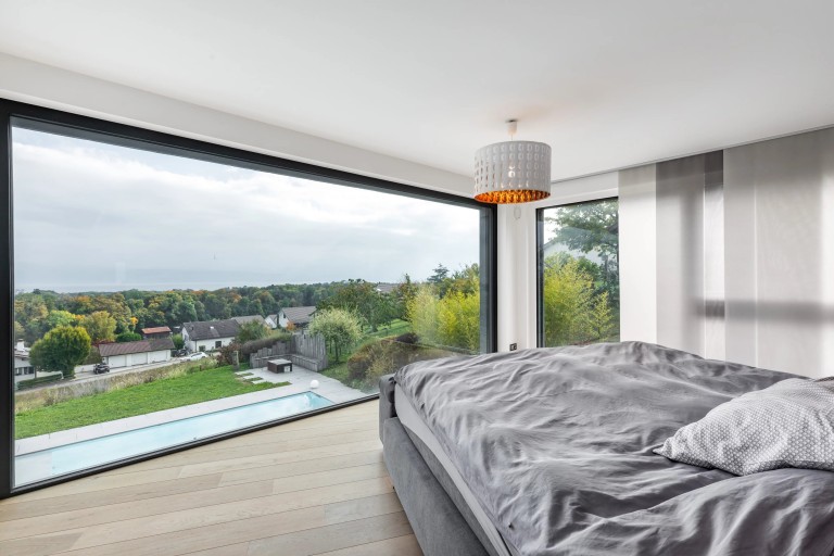 La parcelle, d’une surface de 1485m2, bénéficie d’une vue panoramique sur le lac, apportant une atmosphère paisible et inspirante tout au long de l’année, avec un ensoleillement optimal jour après jour. À l’extérieur, le jardin soigneusement aménagé accueille une piscine chauffée, un brasero et des espaces de détente, parfait pour profiter des beaux jours et des soirées en toute intimité.