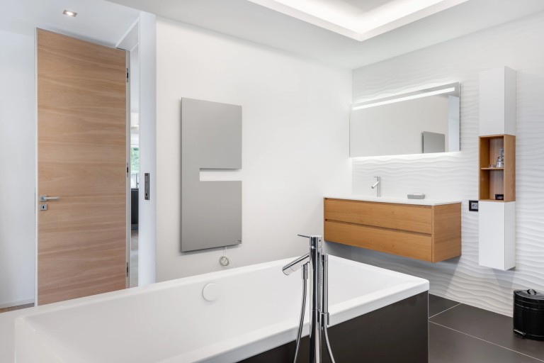 Chauffée au sol grâce à une pompe à chaleur, et couplée d’un système free cooling, la villa jouit d’une gestion des températures aisée et agréable. Domotique et alarme de sécurité s’ajoutent au confort d’utilisation de la villa.