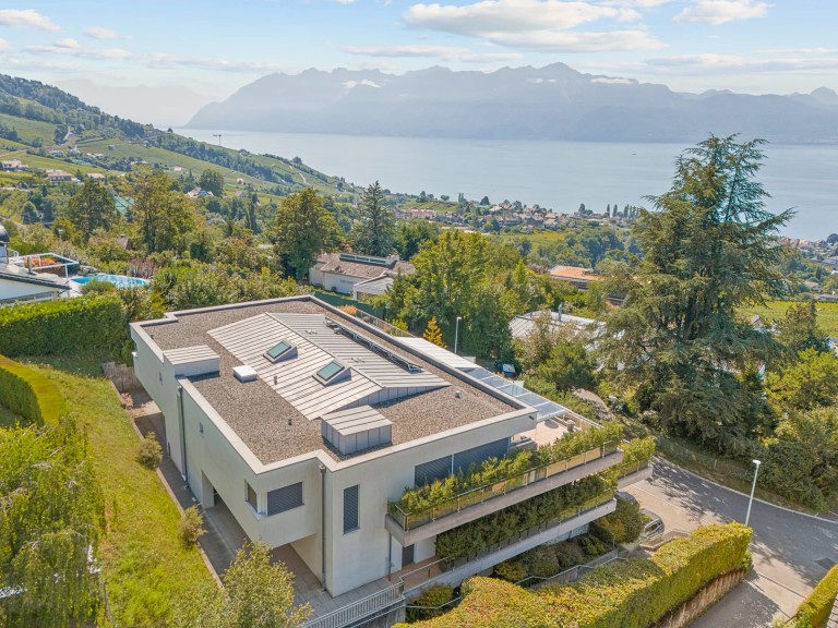 Maison jumelle contemporaine avec vue panoramique sur le lac Léman