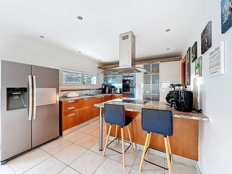 Les espaces intérieurs s’articulent autour d’un vaste séjour ouvert sur l’extérieur, sublimé par de larges ouvertures laissant entrer la lumière tout au long de la journée et offrant une vue dégagée sur le paysage environnant. La cuisine contemporaine, ouverte et entièrement équipée, s’intègre naturellement à l’espace de vie et invite à la convivialité. La suite parentale bénéficie d’un confort appréciable avec son dressing et sa salle d’eau privative, tandis que les autres chambres, lumineuses et bien proportionnées, répondent aisément aux besoins d’une famille. Une pièce supplémentaire, pensée comme un espace modulable, pourra accueillir un bureau, une salle de sport ou un espace de loisirs selon les envies.